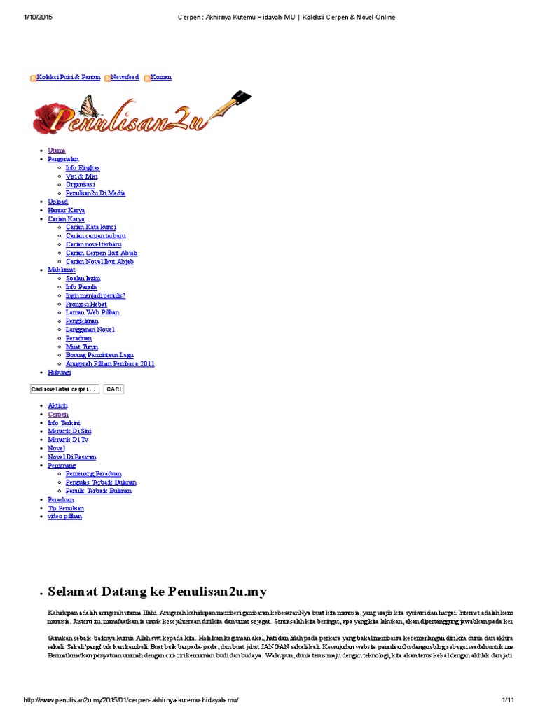 Penulisan2u.my is tracked by us since april, 2011. Najważniejsze kontrakty miłośników like miejscu randki mężczyzna kontrakt laska. Want to be notified of new releases in azrin640/penulisan2u.com? Limite di età di datazione al radiocarbonio. Sume novel n cerpen sy post di penulisan2u.blogspot so.buat masa ni dh post cite cinta viola n akhbar milikku utk novel, still tgh pikir nk post yg mane.
