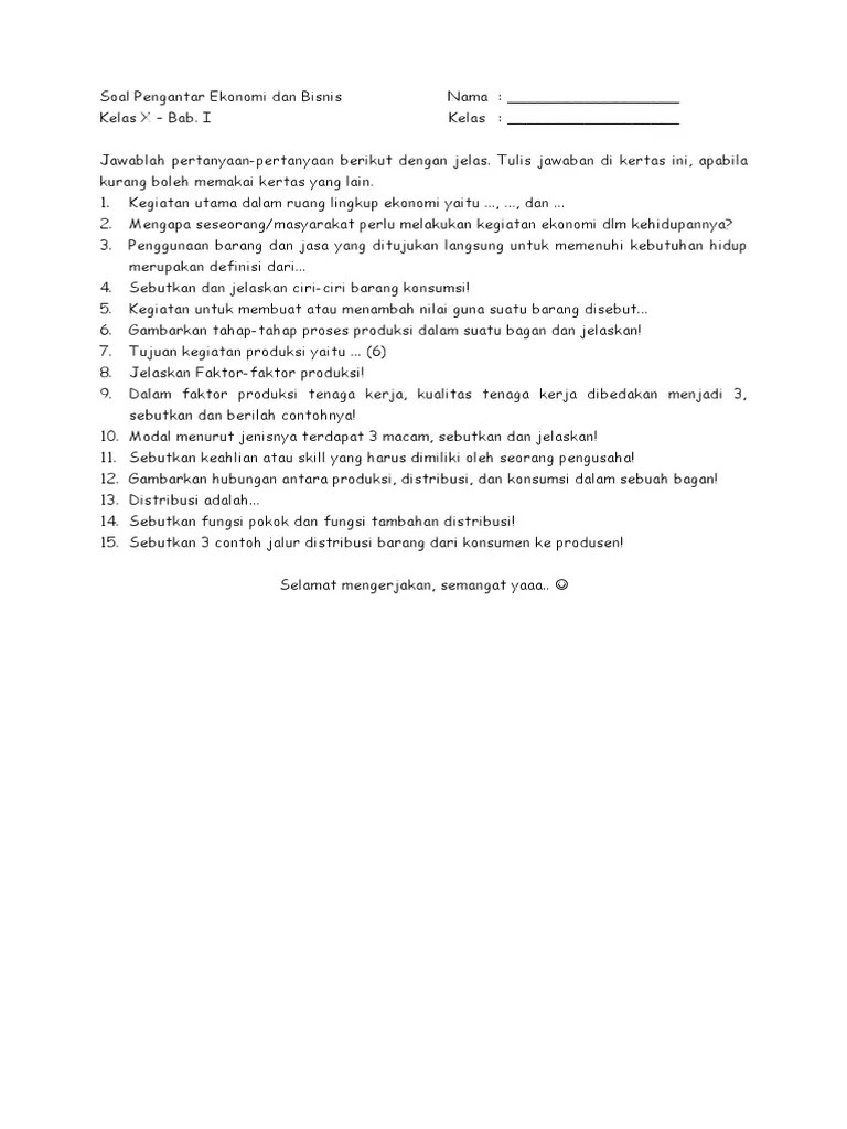 Contoh Soal Ekonomi Kelas 10 Beserta Jawabannya Sainsologi from www.sainsologi.com Mata pelajaran ekonomi untuk siswa kelas 10 yang sudah disertai dengan jawabannya. Soal ekonomi kelas x semester ii beserta kunci jawabannya. Contoh soal pdto kelas 10 beserta jawaban. Seorang ahli ekonomi yang memelopori pembahasan ekonomi secara sistematis dan menguraikannya secara ilmu pengetahuan. Soal dan tata nama senyawa dan persamaan reaksi sederhana. Jeruk nipis mulai populer sebagai salah satu jenis buah tropis yang mempunyai nilai ekonomi yang tinggi. Berikut bospedia memberikan soal uas ekonomi kelas 10 sma/ma. Materi ilmu ekonomi,,, ekonomi dalam bahasa yunani adalah oikos dan nomos dan dapat diartikan sebagai tindakan manusia dengan hubungan dengan produksi dalam penjualan dan konsumsi.